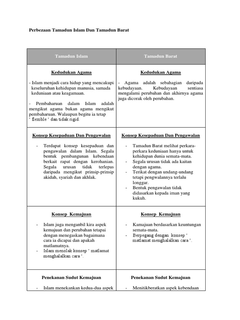 Persamaan Dan Perbezaan Antara Tamadun Islam Dan Tamadun Barat Pdf